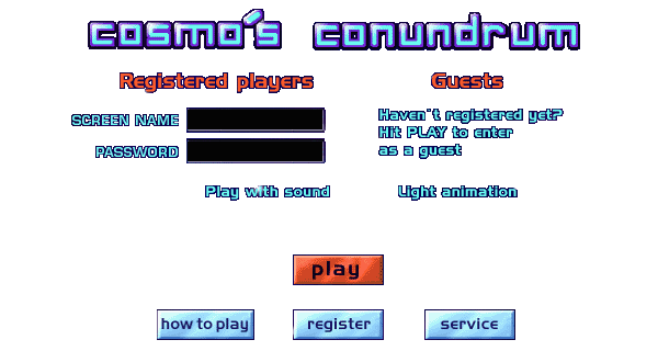 Way back in the last century, I somehow found my way to an online trivia game called Cosmo's Conundrum, hosted at Uproar. It is not hyperbole to suggest that it changed my life. Even today, writing in 2015, over a decade after this game vanished forever, it's still a huge part of my life. I met my wife through it. I made many lifelong friends there. I've been to Cosmonaut weddings and visited Cosmonaut graves. I've met a couple of hundred players in person. It still resonates as a community today.