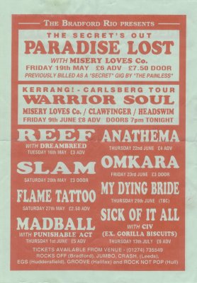 A great secret Paradise Lost gig in Bradford that they played as The Painless: